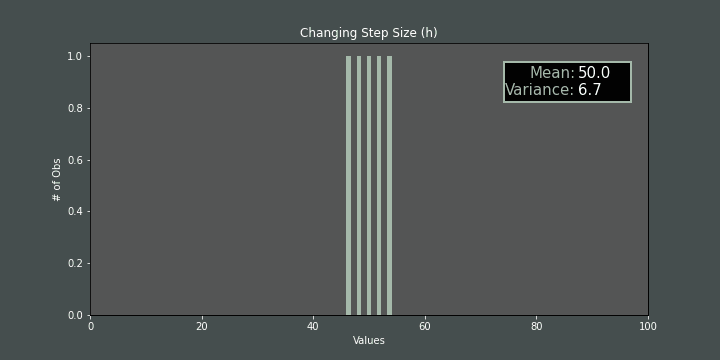 If we change step size (\(h\)) while mis fixed, the variance also changes accordingly: