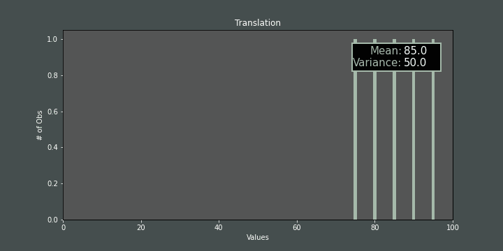 We want to generate a population with predefined mean and variance values. What we have are three controllable parameters: \(a\), \(n\), and \(h\). Let’s analyze how mean and variance change by some transformations.